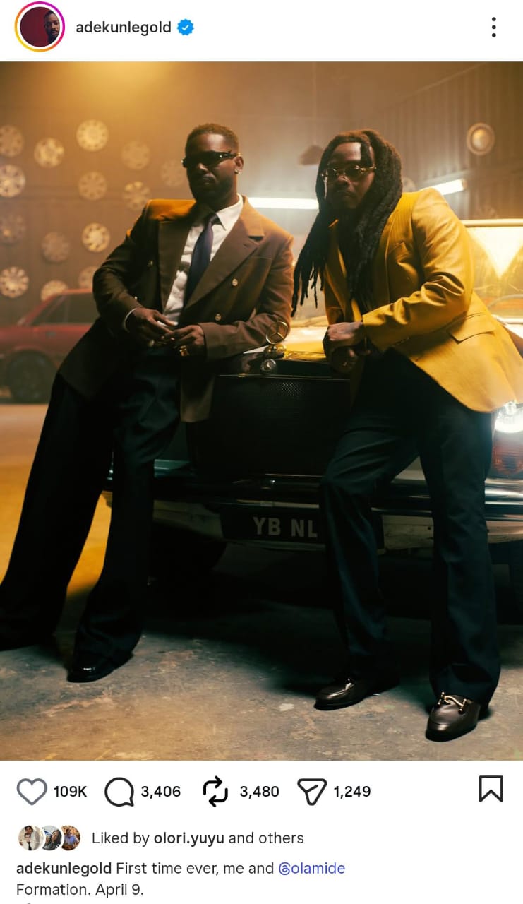 “First time, me and @olamide… Formation. April 9,” Gold wrote.