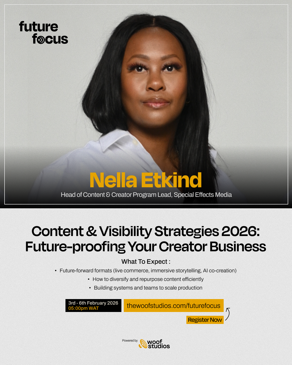 That’s exactly what Future Focus 2026, the virtual masterclass by Woof Studios, was designed to deliver and the stellar lineup of speakers makes this an unmissable opportunity for every creator seeking growth and sustainability.